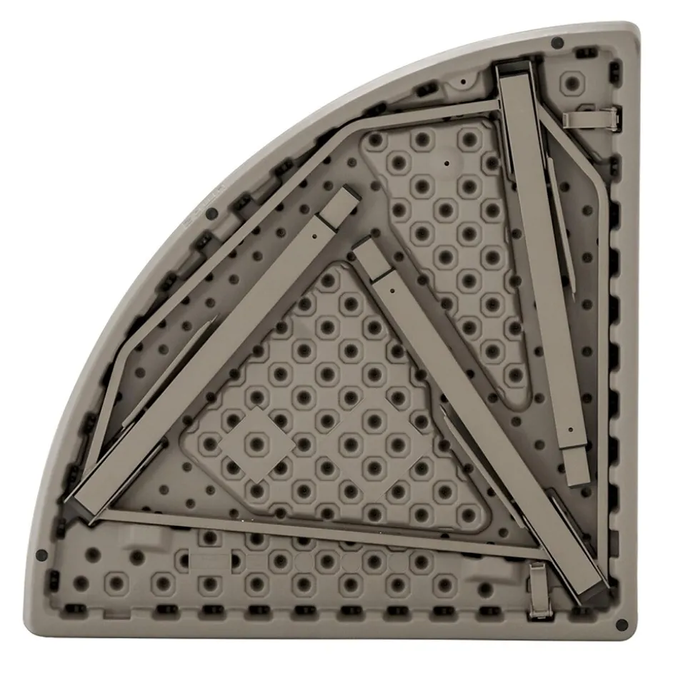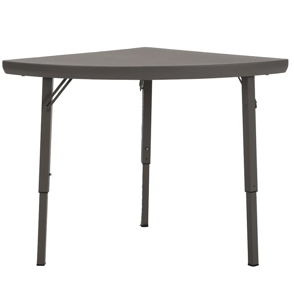The Premium Collection Corner Folding Table constructed of high-density polyethylene and a powder coated steel structure redefines the market for lightweight, folding tables. This table features a table joining system which allows tables in the Premium Collection to be joined together for a variety of configurations. Square section legs combined with a beveled table top and a warm brown color afford an elegant yet simple aesthetic appearance for this table.